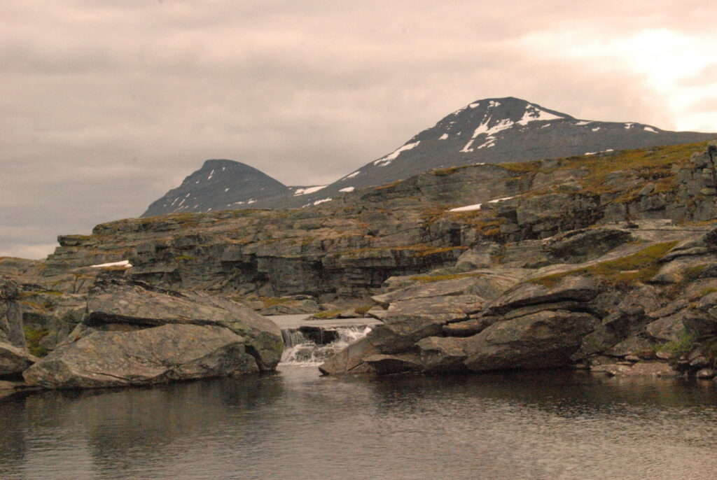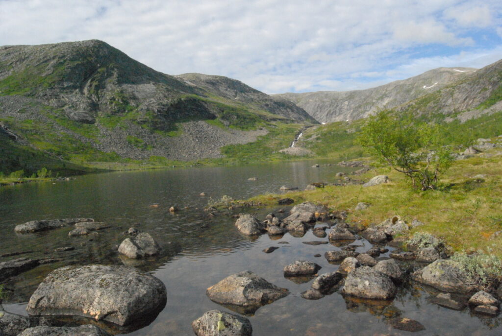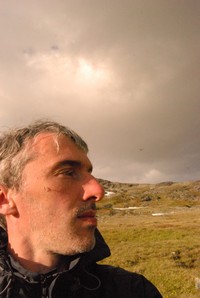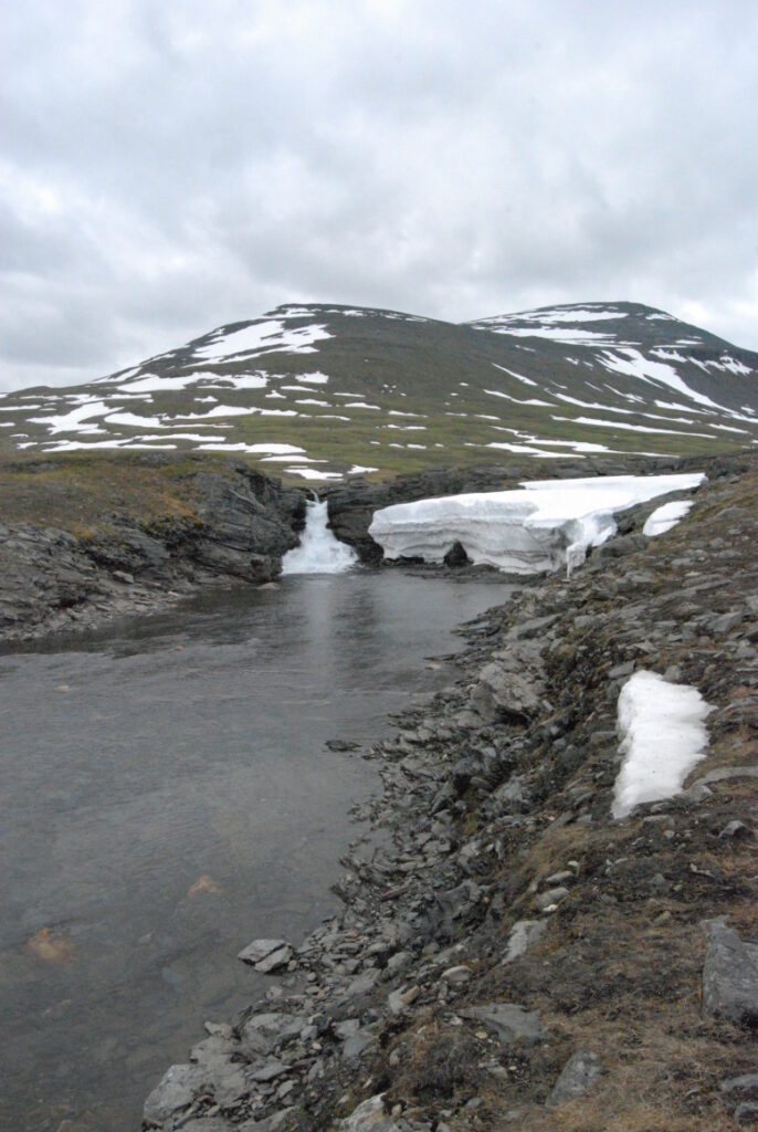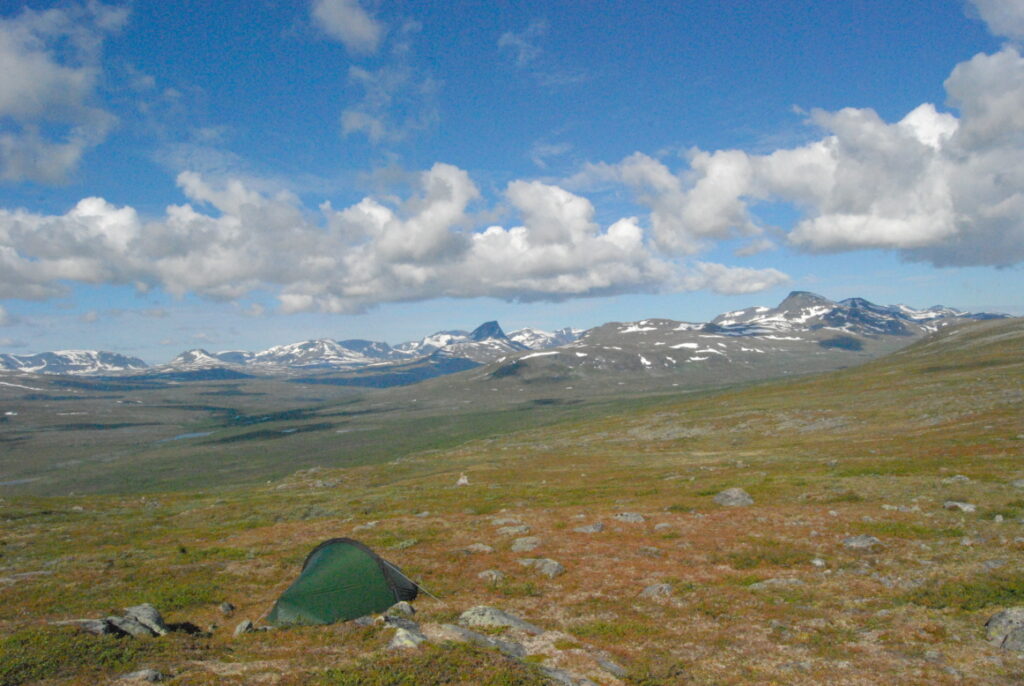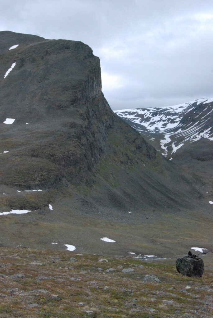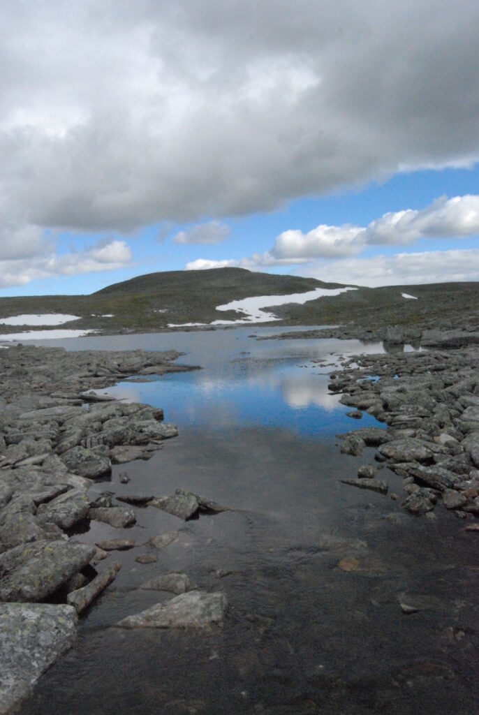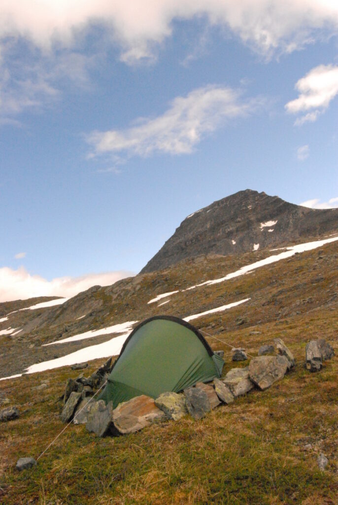 Le bus depuis Tromsø ne permet pas d’atteindre Innset, le point de départ du trek … trente kilomètres à parcourir moitié à pied moitié en stop! Il est encore tôt – vingt trois heures: je marche dix kilomètres avant de planter ma tente aux abords du lac, et la joie de découvrir en pleine lumière à trois heures du matin que les moustiques de dorment pas la nuit – il n’y a pas de nuit. Il est trois heures du matin et j’écris ce poème avant de m’endormir …
