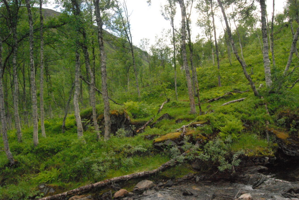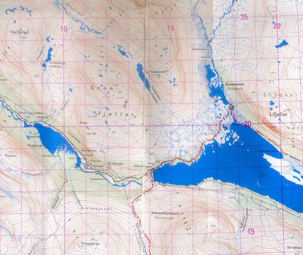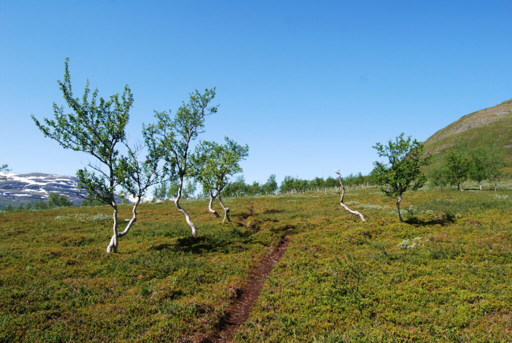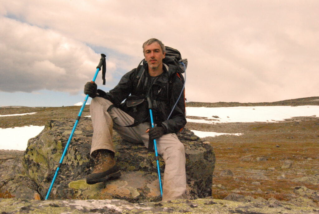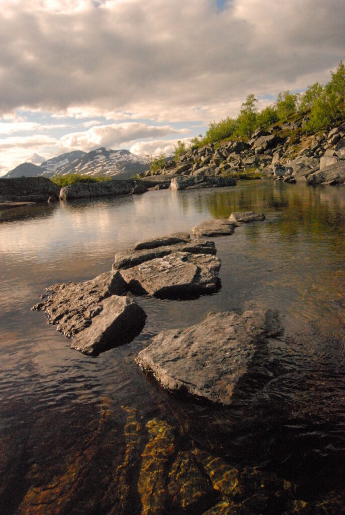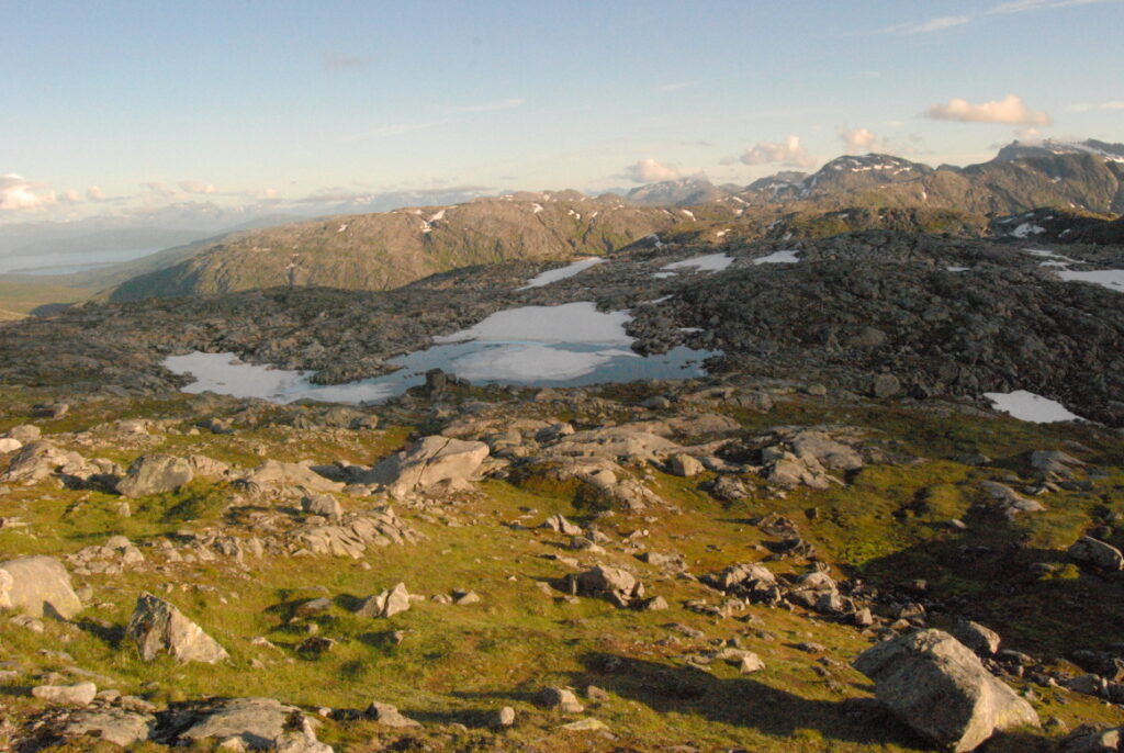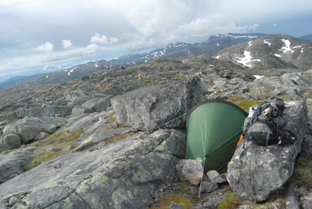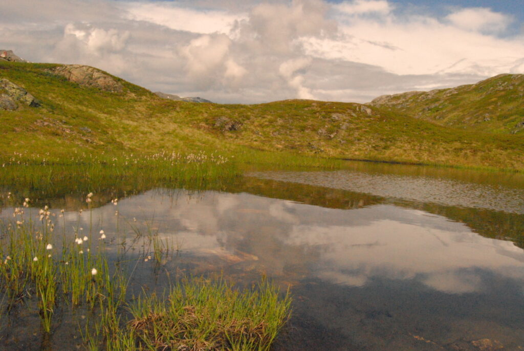 Le bus depuis Tromsø ne permet pas d’atteindre Innset, le point de départ du trek … trente kilomètres à parcourir moitié à pied moitié en stop! Il est encore tôt – vingt trois heures: je marche dix kilomètres avant de planter ma tente aux abords du lac, et la joie de découvrir en pleine lumière à trois heures du matin que les moustiques de dorment pas la nuit – il n’y a pas de nuit. Il est trois heures du matin et j’écris ce poème avant de m’endormir …