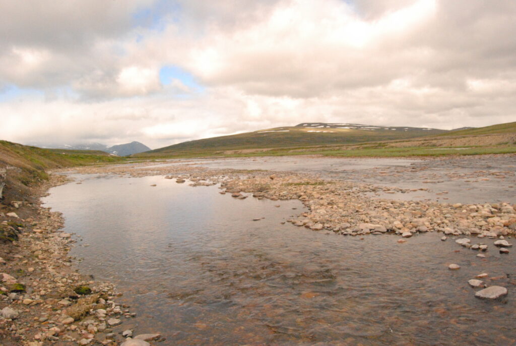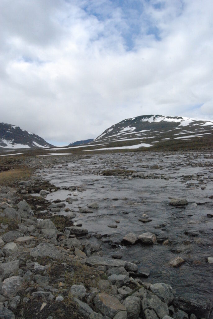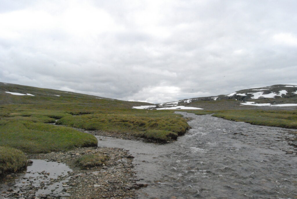 Perdue en travers de cette lande, une rivière cherche la mer, quitte à se fondre de neige pour pouvoir la rejoindre. Le bruit du ruissellement et le vent léger furent souvent mes seuls compagnons.