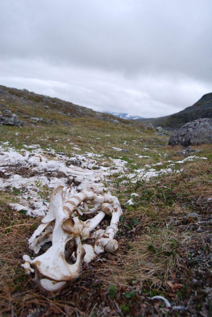 Mais toujours des surprises attendent l’insouciant voyageur! Ainsi le squelette de ce mammifère déchu, mouton ou autre proie facile, victime des griffes du froid ou de l’ours … le genre de trouvaille qui ne rassure guère.